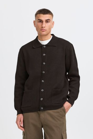 Tøff cardigan med krage og lommer.