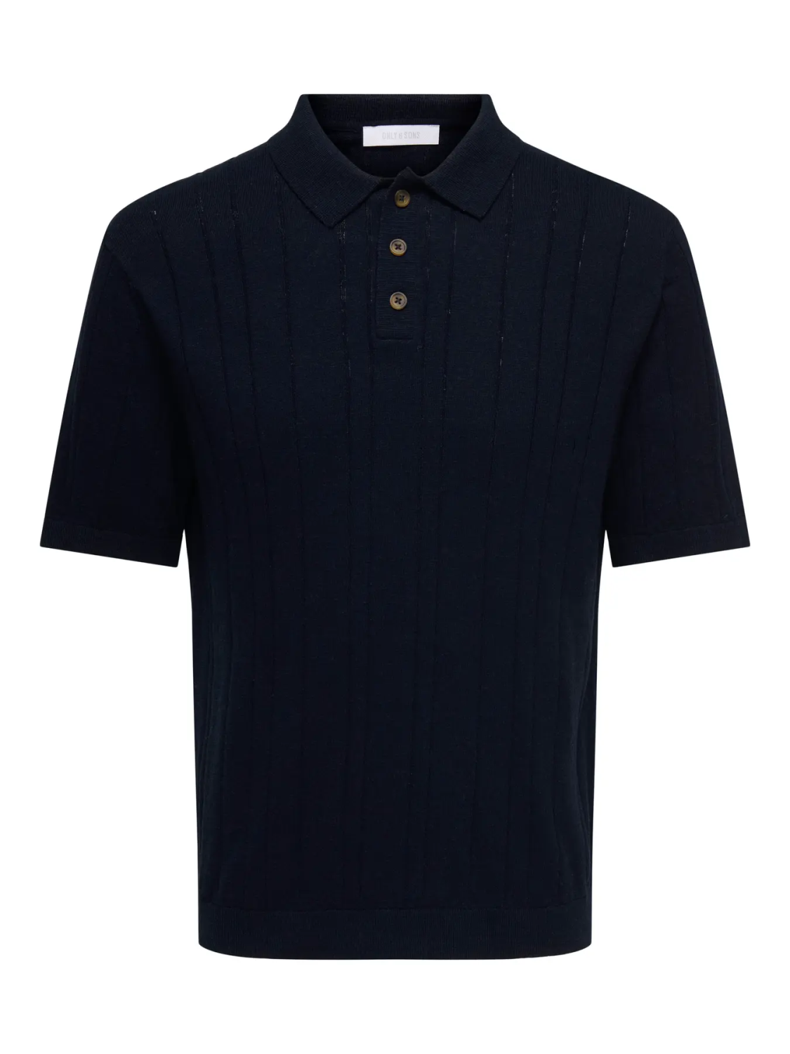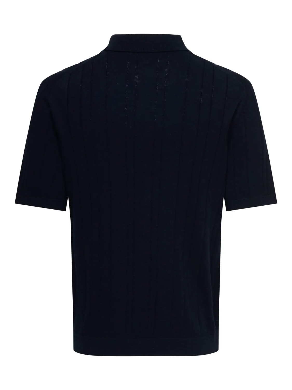 Denne strikkede poloskjorten er litt mer enn en vanlig T-skjorte. Kort knappelukking og krage.